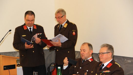 Im Aktivstand wurden Lechner Jasmin und Maderthaner Josef jun. zum Oberfeuerwehrmann befördert, zum Hauptfeuerwehrmann Sternberger Matthias, zum Löschmeister Unterberger Wolfgang und zum Oberlöschmeister Kranawetter Johannes.