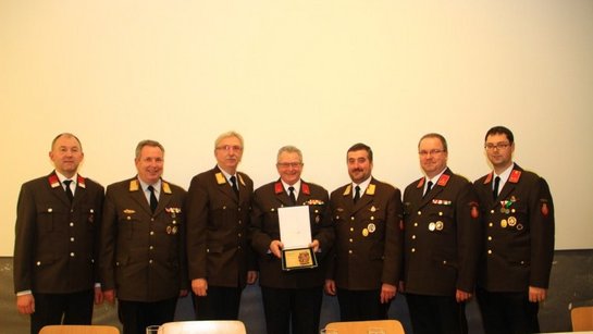 Die Verdienstmedailie für 25- jährige Mitgliedschaft erhielt AW Kranawetter Franz. Die Florianiplakette in Bronze des Landes Oberösterreich wurde von Bezirksfeuerwehrkommandant Oberbrandrat Max Presenhuber an unseren Bürgermeister a.D. Ehrenbrandinspektor Karl Bogengruber überreicht.