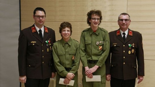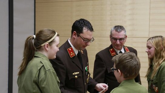 Außerdem wurden die Abzeichen für die bestandenen Erprobungen an die Jugendgruppe überreicht: an Simon Sergl die Abzeichen für die erste Erprobung, an Moritz Koller, Eva Mauhart und Sahra Reif die Abzeichen für die Zweite, an Jonas B., Lukas Maderthaner und Tobias Sergl die Dritte und für die vierte Erprobung an Christoph Bergmayr und Aaron Kalkgruber.