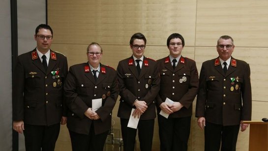 Bernadette Mayr zum Oberfeuerwehrmann, Georg Blumenschein, Karin Freistetter und Lukas Mayr zum Hauptfeuerwehrmann und Johannes Kranawetter zum Hauptlöschmeister. Jakob Sternberger erklärte sich bereit, die Löschgruppe zu übernehmen und wurde daher zum Hauptbrandmeister ernannt.