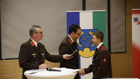 Nach den Rückblicken auf das vergangene Jahr wurden unsere neuen Kameraden Thomas Fischer und Maximilian Gschnaitner, die im Jahr 2017 der Jugendgruppe beigetreten sind, angelobt. Aaron Kalkgruber, der nach sechs Jahren in der Jugendgruppe in den Aktivstand übernommen wurde, wurde im Aktivstand angelobt.