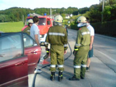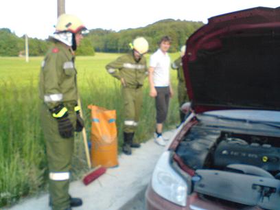 Das Fahrzeug hatte in der Unterverkleidung Feuer gefangen, das von einem vorbeikommenden Passanten in Zusammenarbeit mit HFM Unterberger Gerhard, der ebenfalls zufällig am Einsatzort vorbeifuhr, mittels Autofeuerlöscher rasch gelöscht werden konnte. Beim Eintreffen am Einsatzort wurde ein Brandschutz aufgebaut, der ausgelaufene Treibstoff gebunden und der Abschleppdienst verständigt. Der Einsatz konnte um 19.29 abgeschlossen werden. Es wurden keine Personen verletzt.