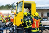 Im Anschluss wechselten wir in den Übungsbetrieb und nutzten die Gelegenheit, verschiedene Rettungstechniken am LKW praktisch zu trainieren. Besonders die Arbeitshöhe am großen Fahrzeug stellte eine Herausforderung dar und forderte die Mannschaft. So konnte jeder Kamerad den Umgang mit dem hydraulischen Rettungsgerät nochmals vertiefen und wertvolle Erfahrungen, besonders beim Arbeiten an einem LKW, sammeln.
