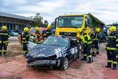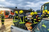Im ersten Teil der Übung wurde ein Verkehrsunfall angenommen: Ein LKW war auf einen PKW aufgefahren, in dem sich zwei Personen befanden. Die Einsatzkräfte von RLF und LF übernahmen die Rettung. Die beiden „Verunfallten“ – dargestellt durch Übungsdummys – konnten rasch und vor allem schonend befreit sowie an die Rettung übergeben werden.